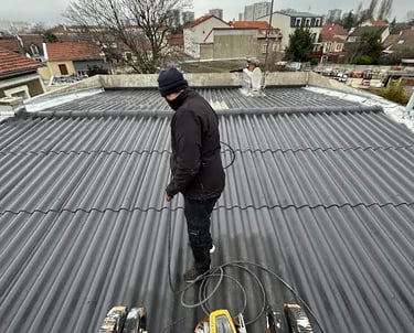 Prolongez la durée de vie de votre toiture en tuiles, ardoises, zinc, bac acier, fibrociment etc sans engager une rénovation complète. Huzler Couverture propose un service d'application de produit d'assainissement suivie d'un nettoyage haute pression d'une application de peinture hydrofuge colorée ou incolore. Ce revêtement protecteur imperméabilise votre toit et empêche le retour de la mousse et des lichens à Saint-Mandé, Aulnay-Sous-Bois, Vitry-sur-Seine etc . Idéal pour les toiture poreuses ou décolorées par la pollution du Val-de-Marne, ce traitement redonne l'aspect du neuf à votre maison tout en renforçant sa protection. Demandez votre diagnostic gratuit pour une toiture propre et éclatante