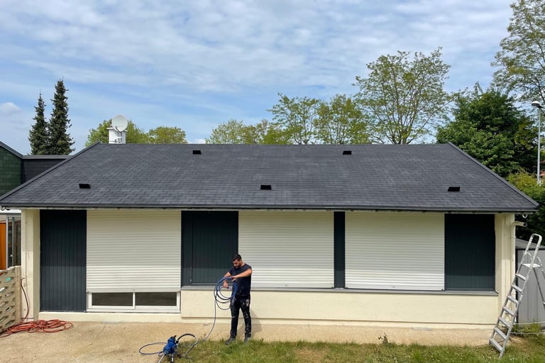 Nous utilisons des peintures techniques haut de gamme, photocatalytiques, hydrofuges et auto-réticulables, offrant une excellente adhérence et un effet autonettoyant durable.
