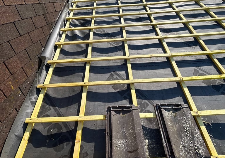 Spécialistes de la couverture traditionnelle et moderne, nous intervenons sur tous types de toitures : tuiles, ardoises, zinc, bac acier, tôle, ou encore toit-terrasse.